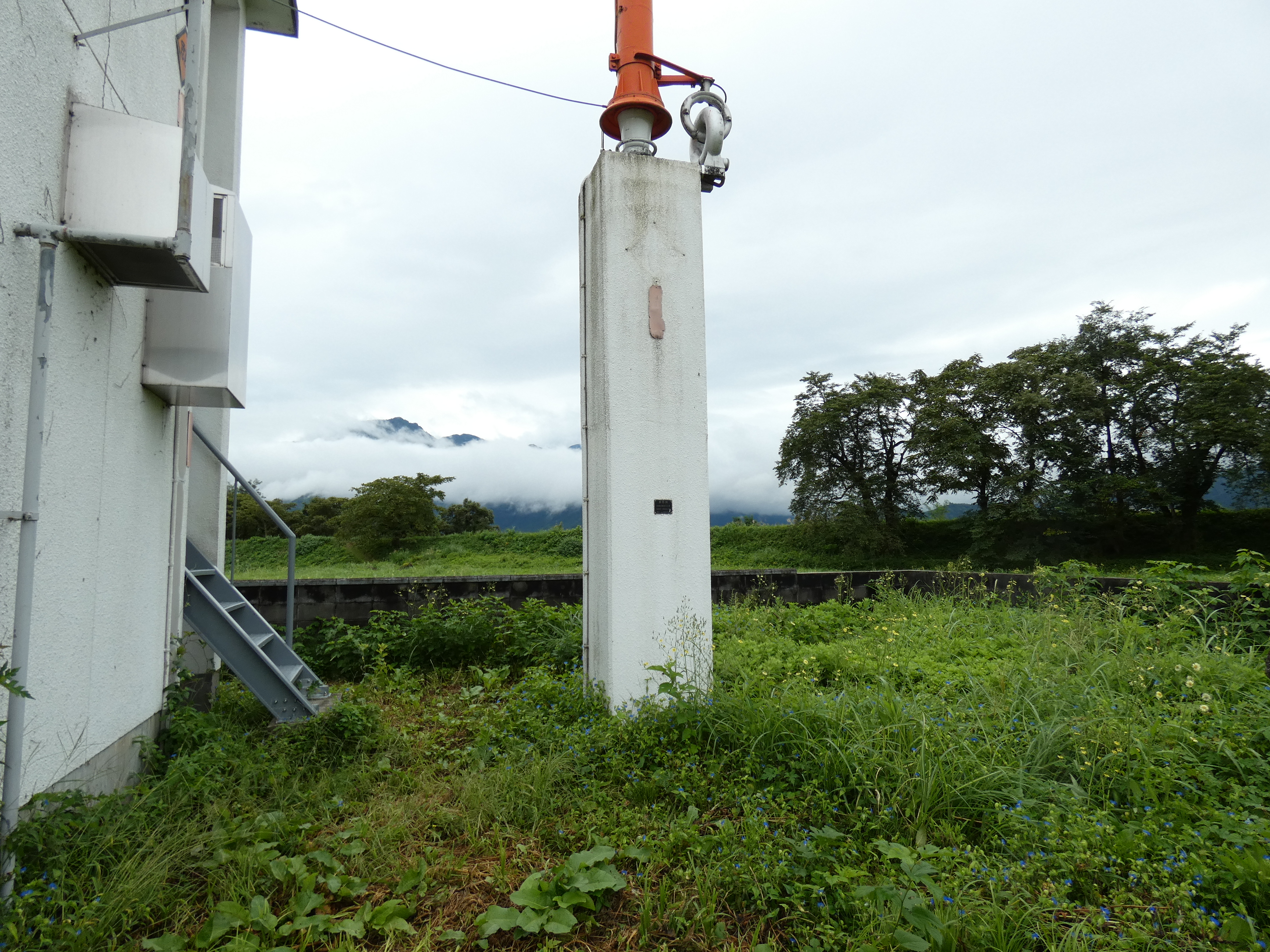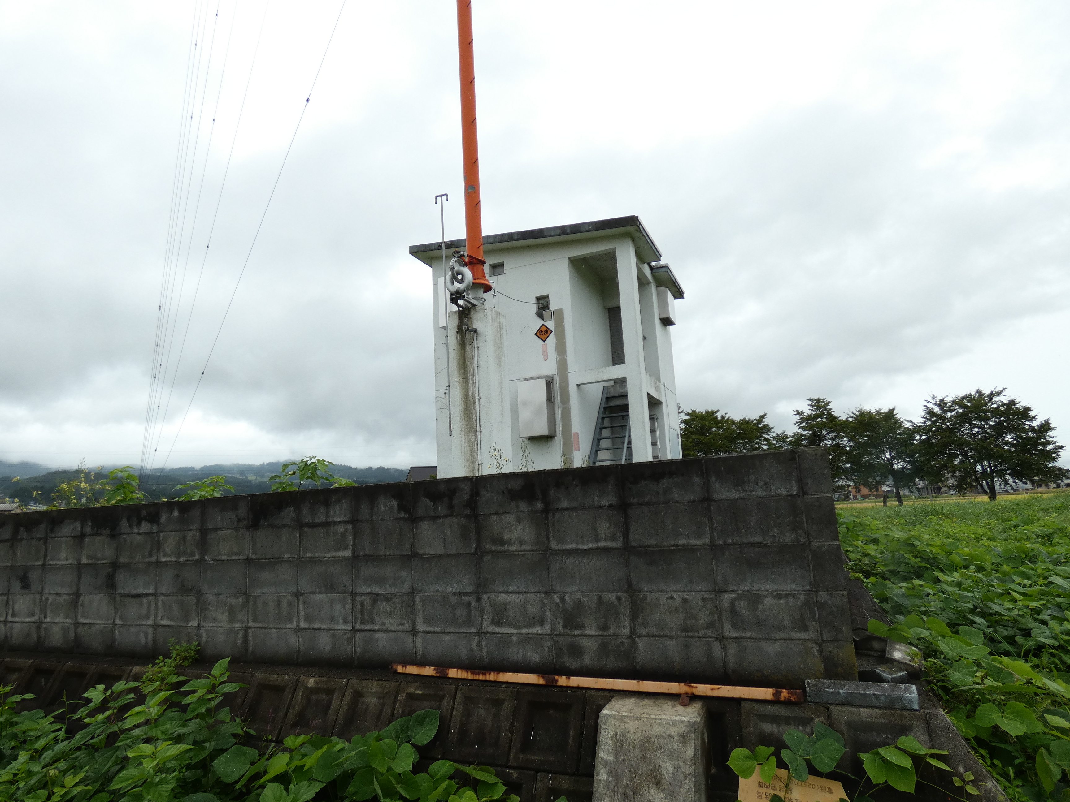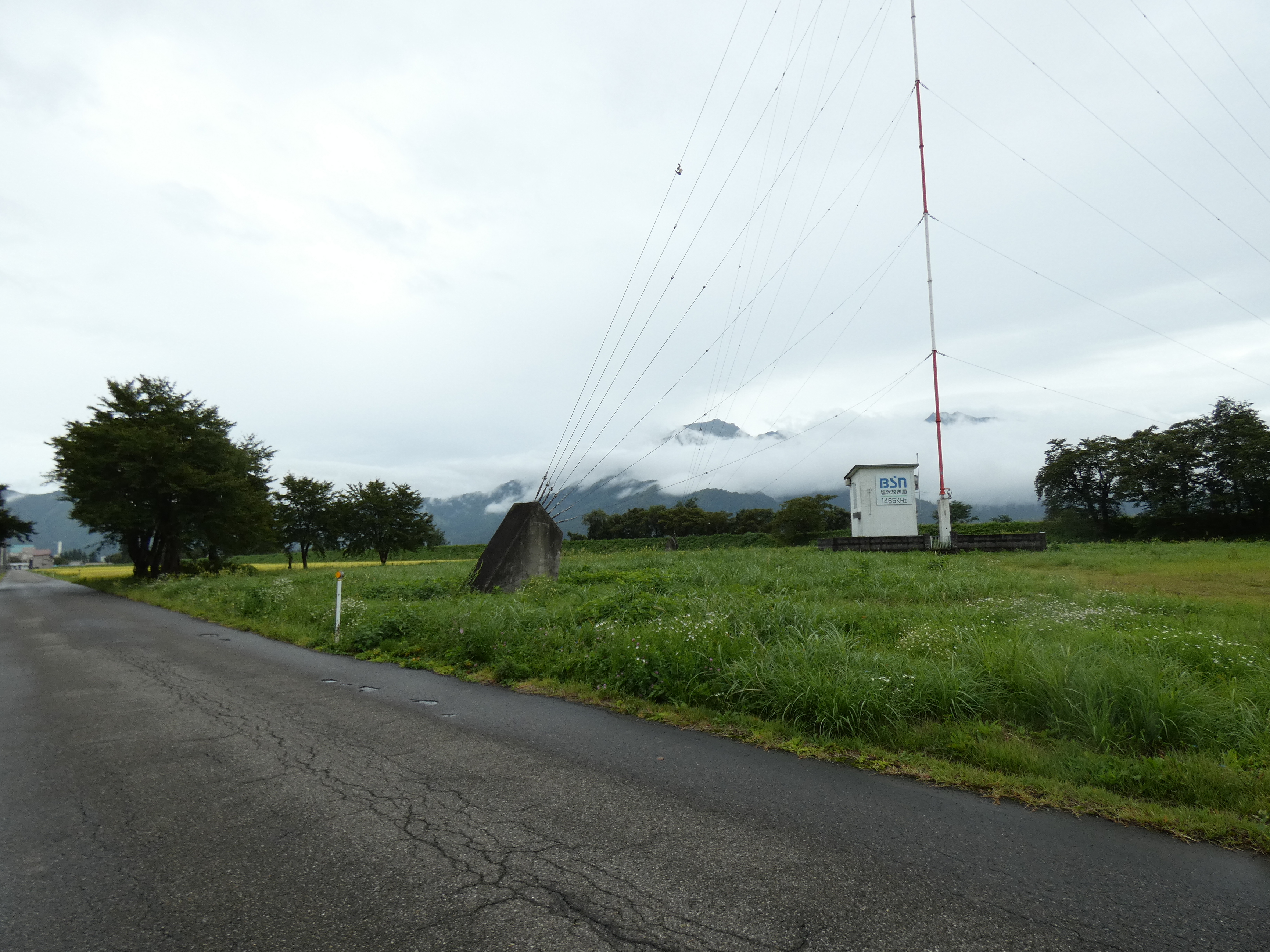新潟放送の塩沢ラジオ送信所。天候恵まれず小雨の降る中の撮影となった。