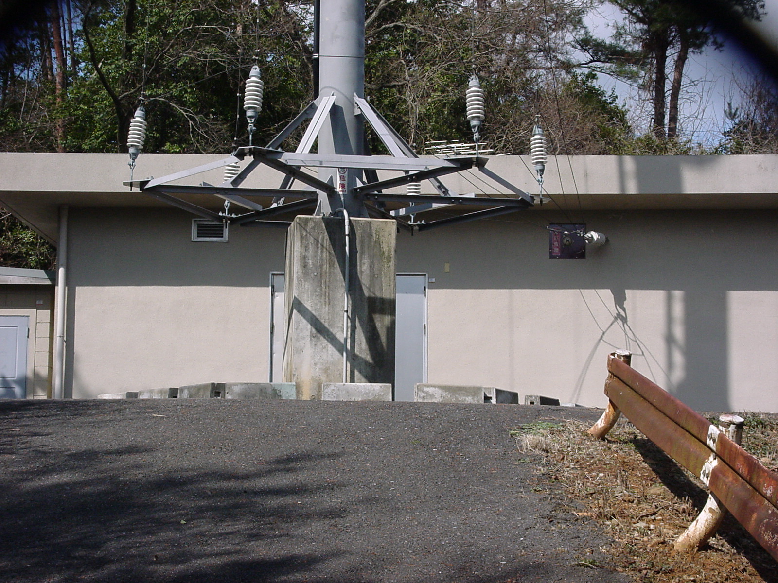 旧国鉄の京都中継所跡地になるのでは無いかと思う。 京都市内から探しても、なかなか目に付かない。 鉄塔があまり高くないのと、亜鉛メッキの鉄塔は年月がたつと 山の木々にとけ込み目立たない。東側の山科側からの方がよく見える。 中継所の近くまで住宅地が近づいており、 道路も住宅地の中を抜けて来る必要がある、道路は狭いが、 山越えの車の抜け道となっているので交通量は多い。 京都駅方向から進入すると、住宅街から抜けてすぐに左手に フェンスのされた道路がある。そこを登ることとなる、 行き過ぎるとゴルフ場へたどり着く。 車だと、ゴルフ場迄の間に無理すりゃ止めておけないことも無いが 道が狭いのと交通量が多いので気お使う。 フェンスからは送信所まで、コケが生えているがアスファルト舗装されている。 | |