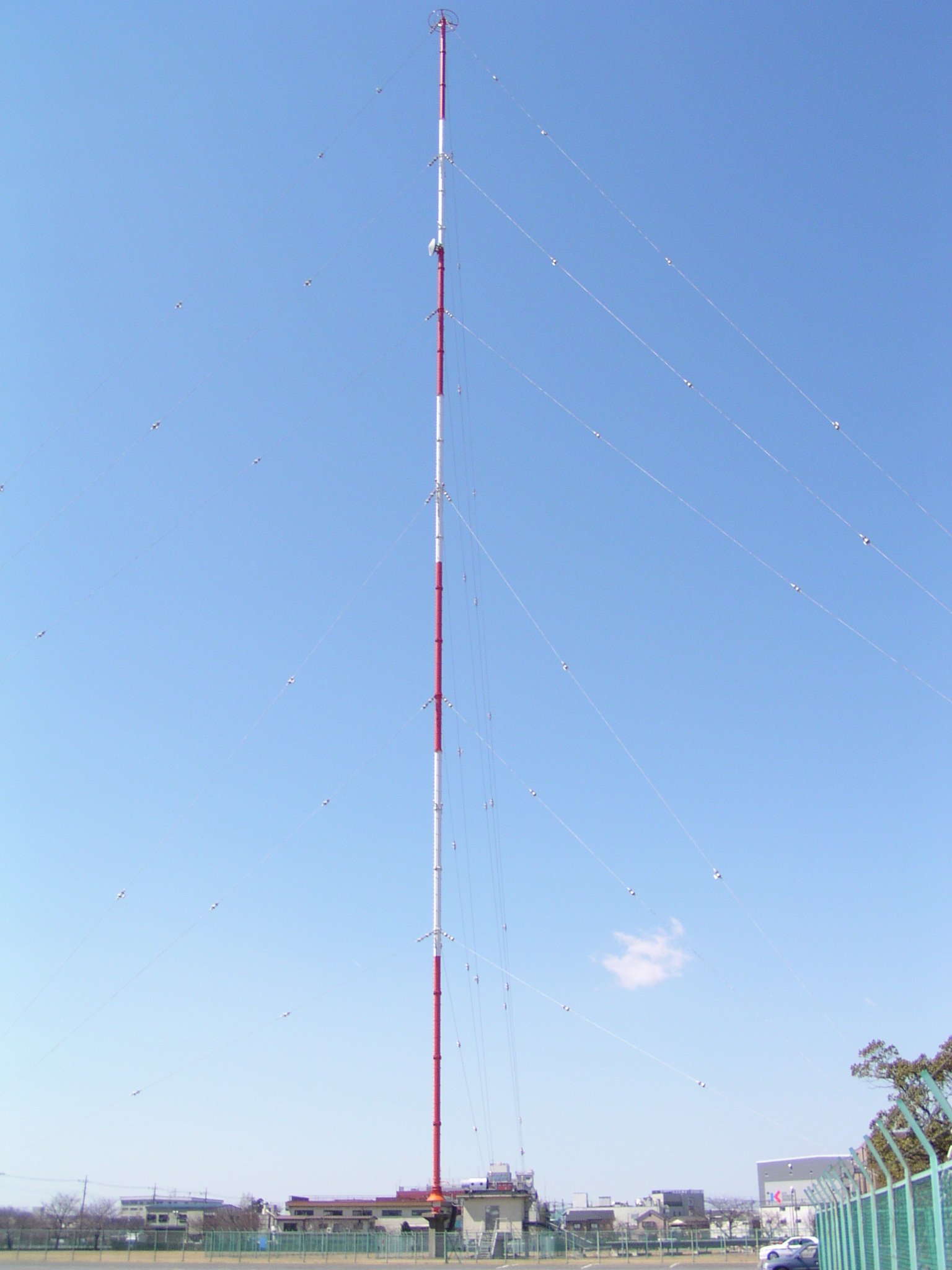 さすがに大きくて立派な局舎 シンプルな形のアンテナ上部 STLパラボラ 謎のてすりというか、なんなだ? すぐ東側にある予備送信所 こちらは地味な色で、トラス鉄塔、 支線にも給電して笠型のアンテナとして働く様です。 緊急時にはUHFのSTLが使える様にかスタックでアンテナが
