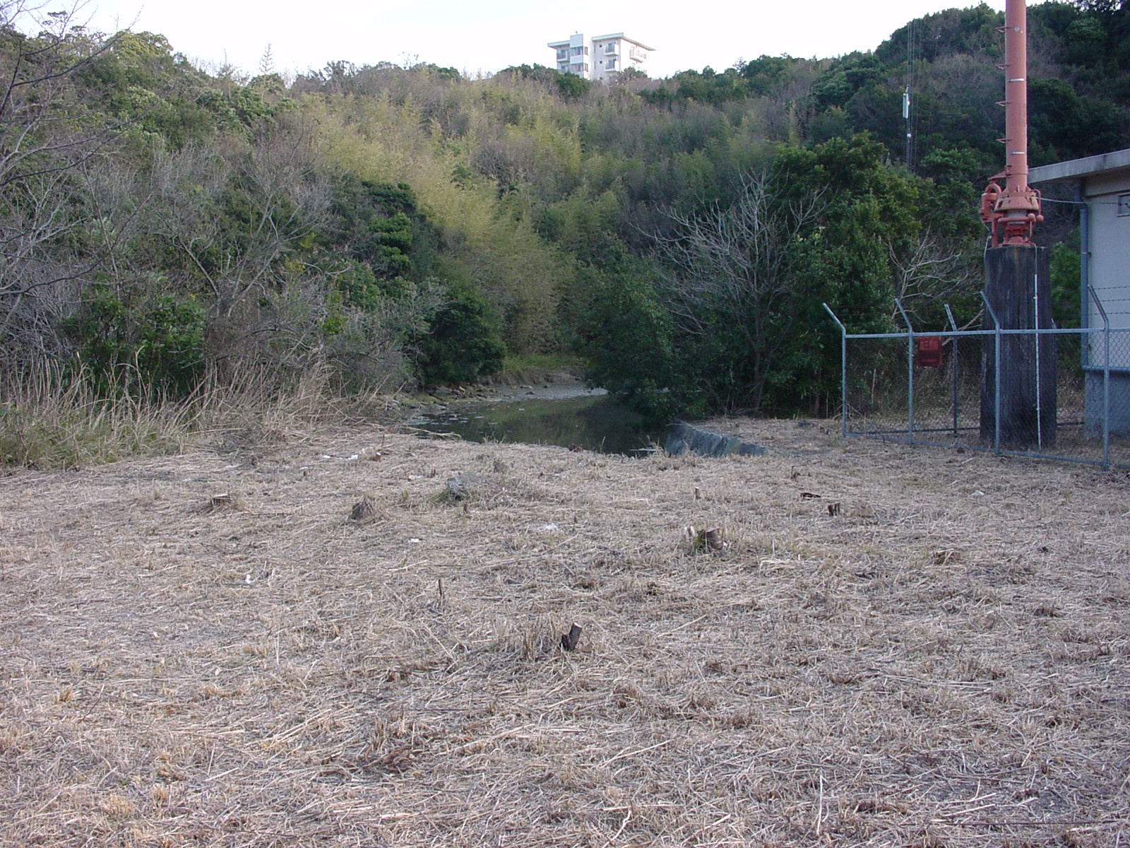 この方向からの局舎左には池?があります。