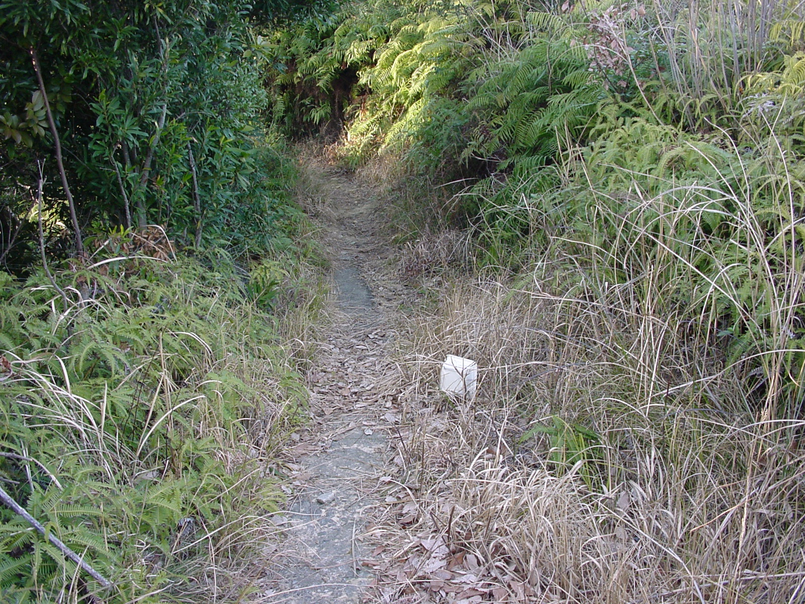 獣道の様な道を進むと上の高台へと出る。