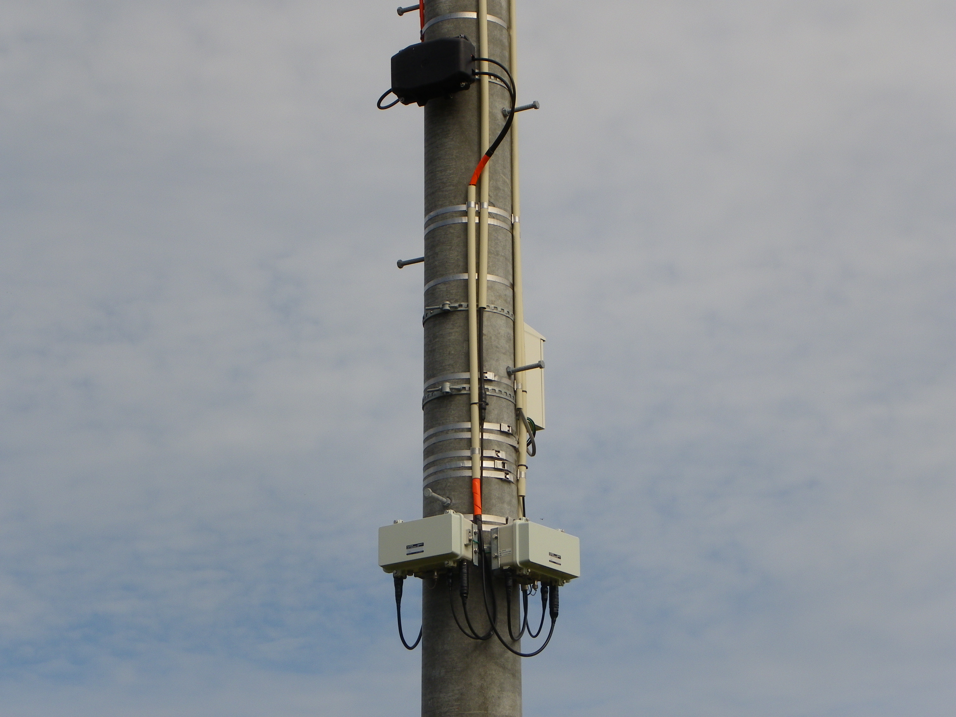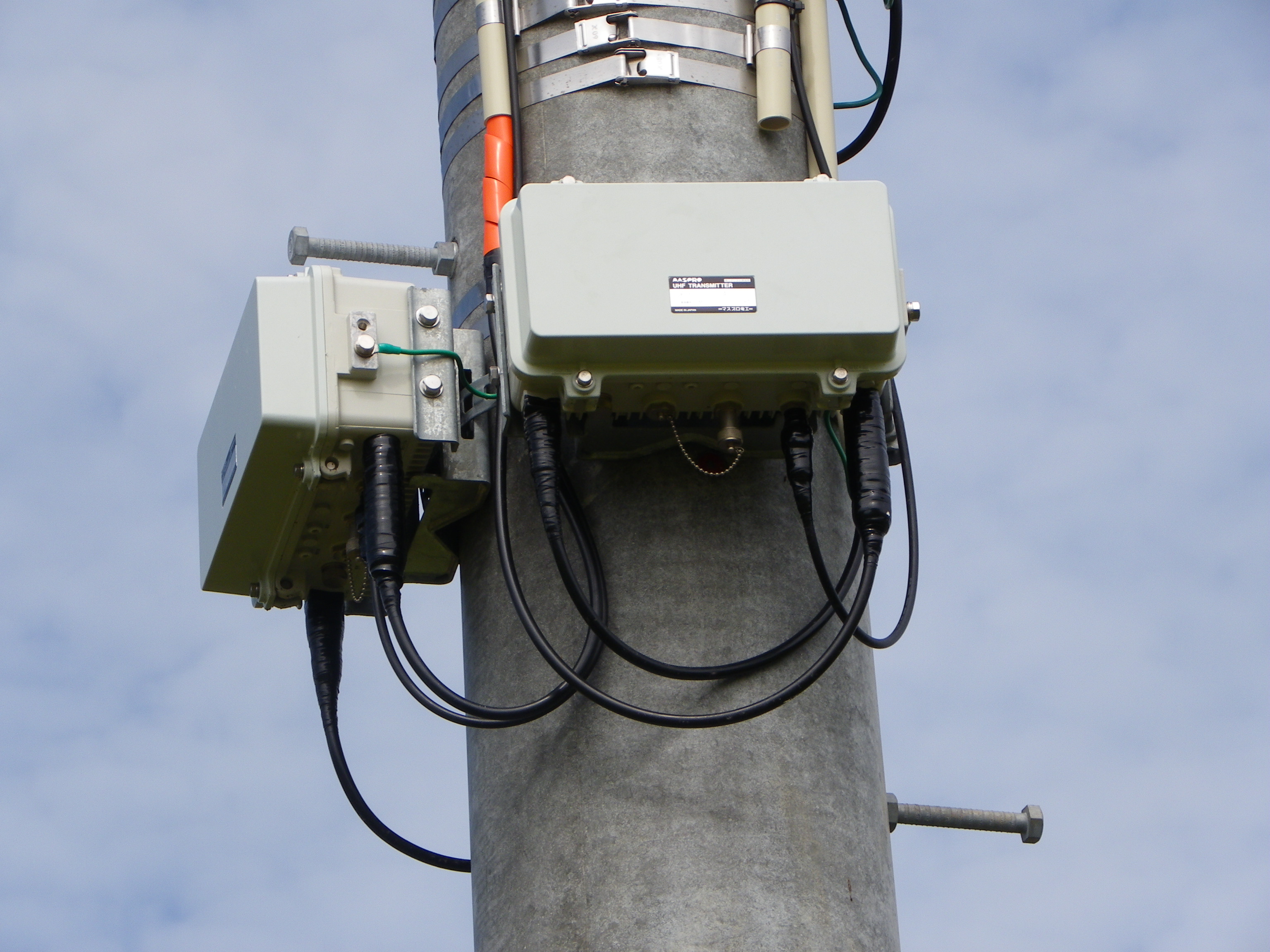 | 羽後西部ギャップフィラー局No12(羽後中山)です。 使っているのか謎の診療所のすぐ南側。、 敷地が診療所駐車場からの横空き地内の端にある。 この局は送信機ユニットが2台あり、3RGと8RGに1台、 8RGに1台のユニットとなっている。 | |