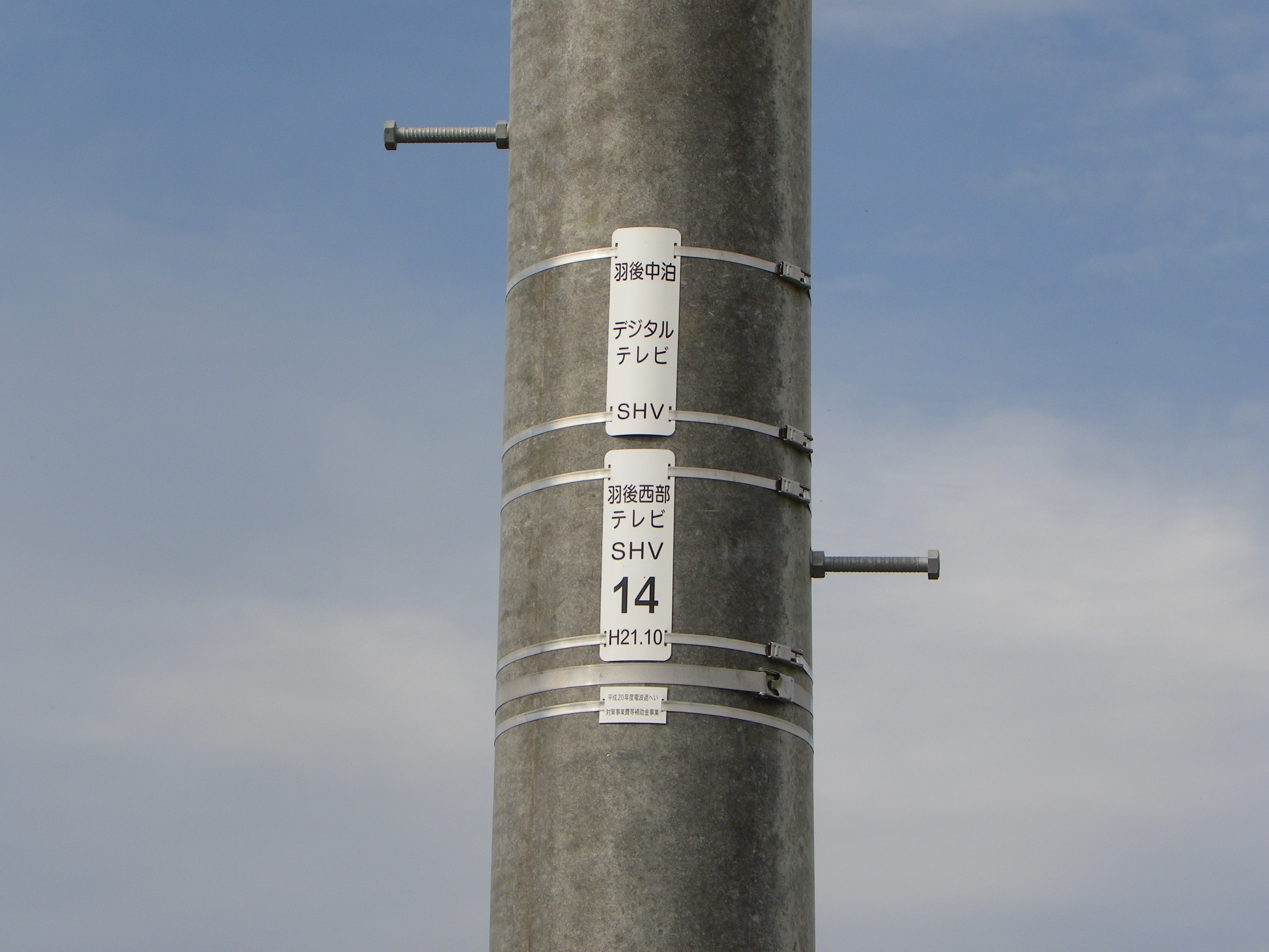 秋田県内放送局 ABS,AKT,AAB,NHK 羽後西部地区テレビ共同受信組合 ■羽後西部14 SHV (羽後中泊) ABS/25ch/0.01w AKT/26ch/0.01w AAB/33ch/0.01w 総合/23ch/0.01w 教育/19ch/0.01w 秋田県雄勝郡羽後町下仙道上中泊 | |