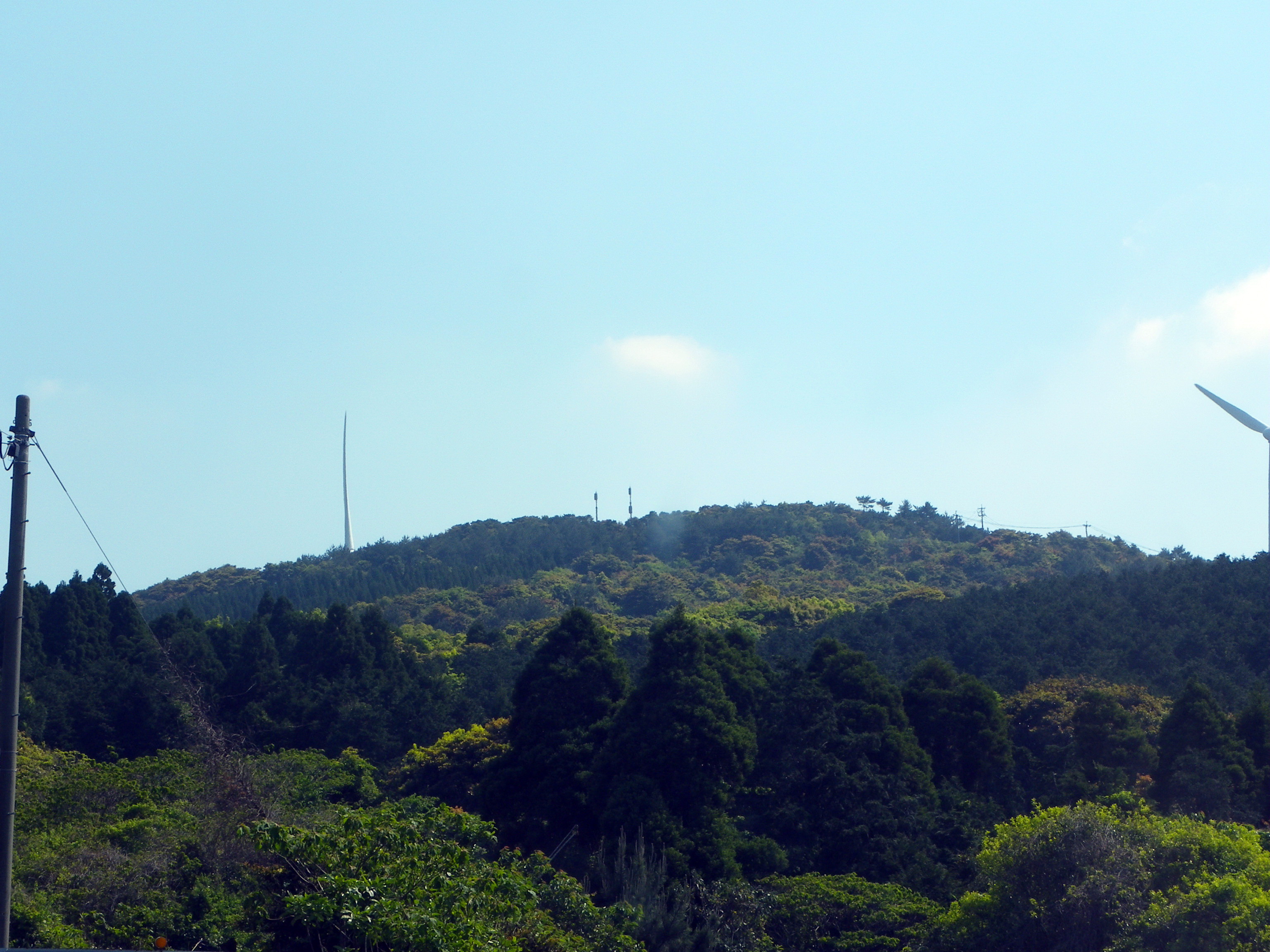 | 鹿児島県は長島町の、長島南サテ。 通称、春木ヶ岡といわれる所にある、岡とはいうが山である。 見晴らしがいい場所らしいのだが、テレビサテ付近は草木がのびていて展望は無い。 サテにたどり付く寸前に道が分岐していたので、そちらに行けば展望があったのかもしれないが未確認。 サテ側の道路はサテ前を通り過ぎると町の防災無線中継所前で行き止まる。 | |