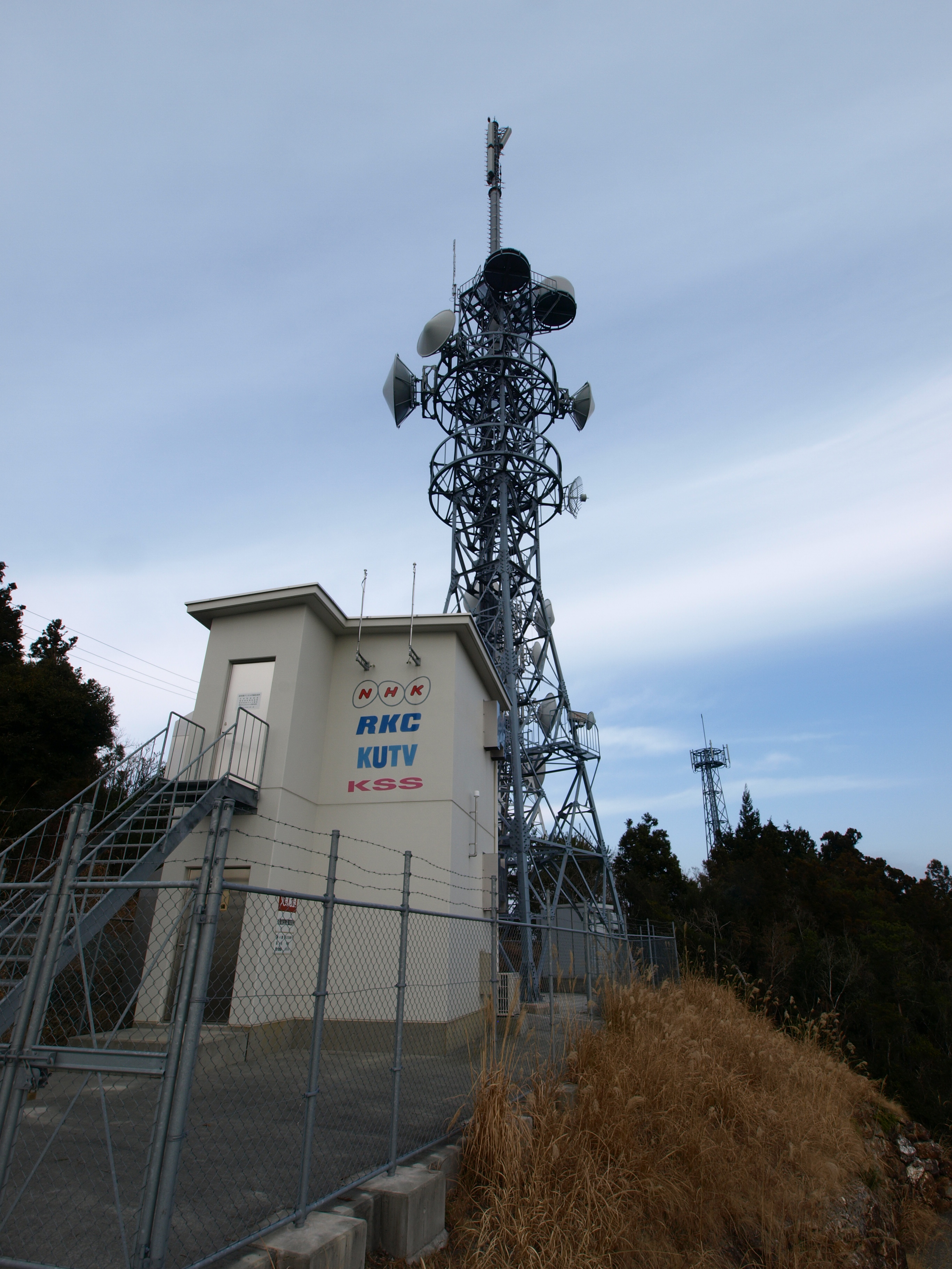 | 高知県土佐市の西端で須崎市市街地の北部にある虚空蔵山にある虚空蔵テレビサテ。 元々は旧中村市など県西部にテレビを中継するための固定局(FX)が置かれていた、 デジタル化でサテ局となった。 山頂までは車道があり、観光地としてか微妙に整備されている。 山頂部は広々県防災、警察、携帯など中継所が点在している。 | |