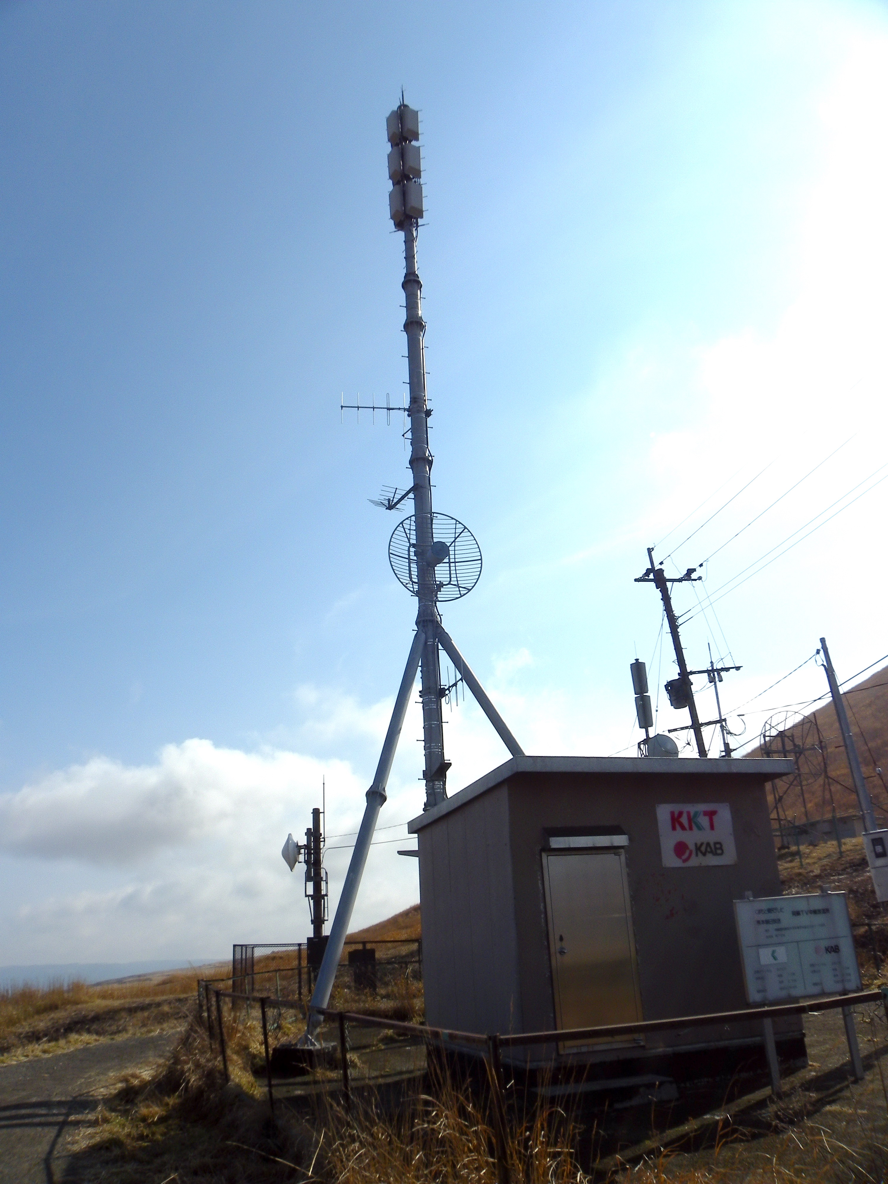 | 熊本県阿蘇市にあったKKTとKABの阿蘇テレビサテ。 阿蘇山の米塚の北側にある。周辺は牧場?もしくは牧草地であり、 以前立ち寄り時は狂牛病騒ぎで周辺多くの場所で立ち入り規制があり、 近づけなかったような。 デジタル化で、民放は共同の送信所へなった。 | |