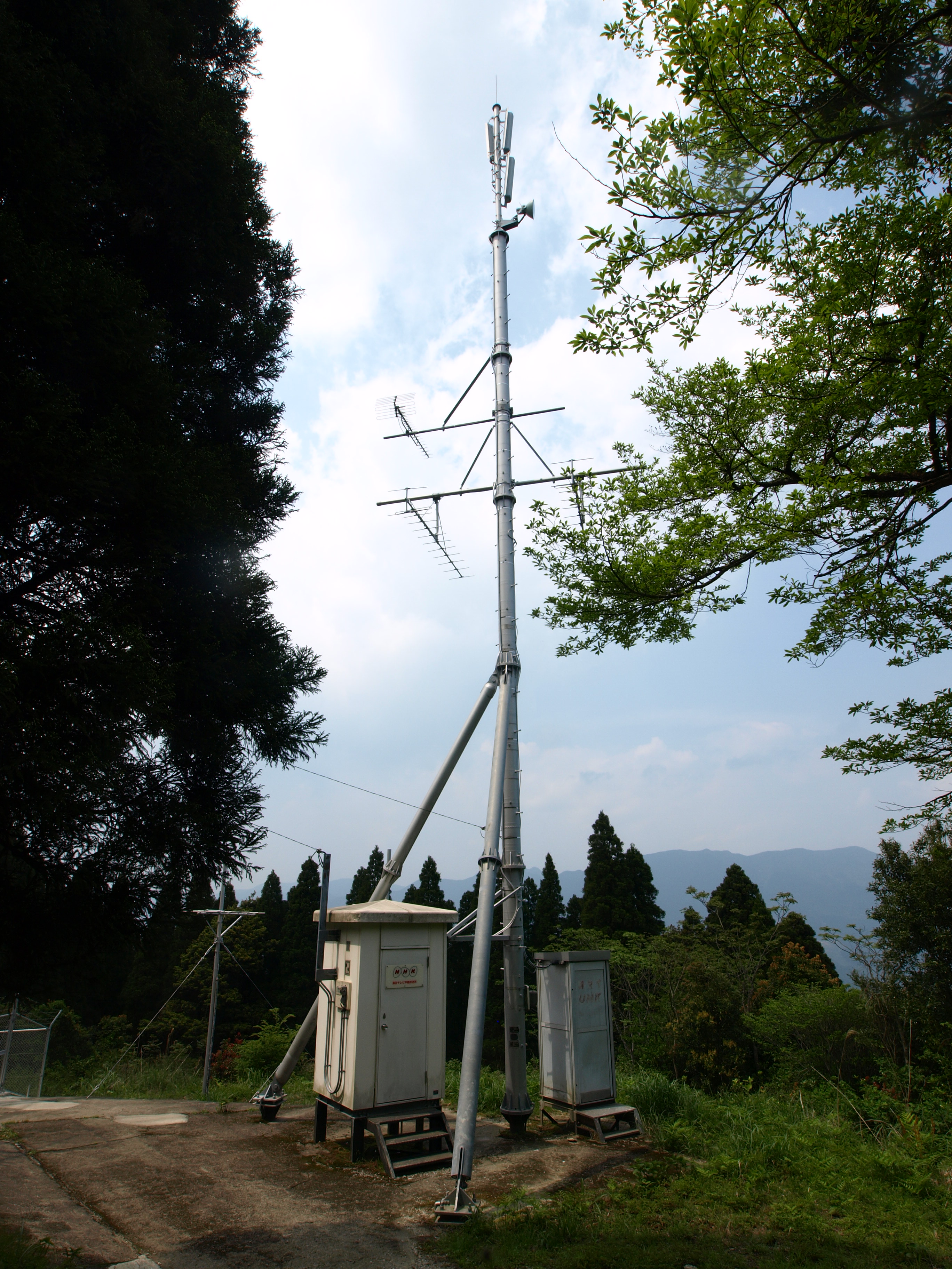 | 宮崎県は日南市にあったアナログの酒谷テレビサテ局。 日南市の山間部、酒谷の男鈴山の中腹に位置する、 保守道路が東の方から伸びておりルートは長く本当にたどり着けるのか 不安になるくらい長い。開けた所にサテはあり道路は行き止まる。 デジタル化で新たな鉄塔局舎が出来たので、このアナログ設備は廃止。 | |